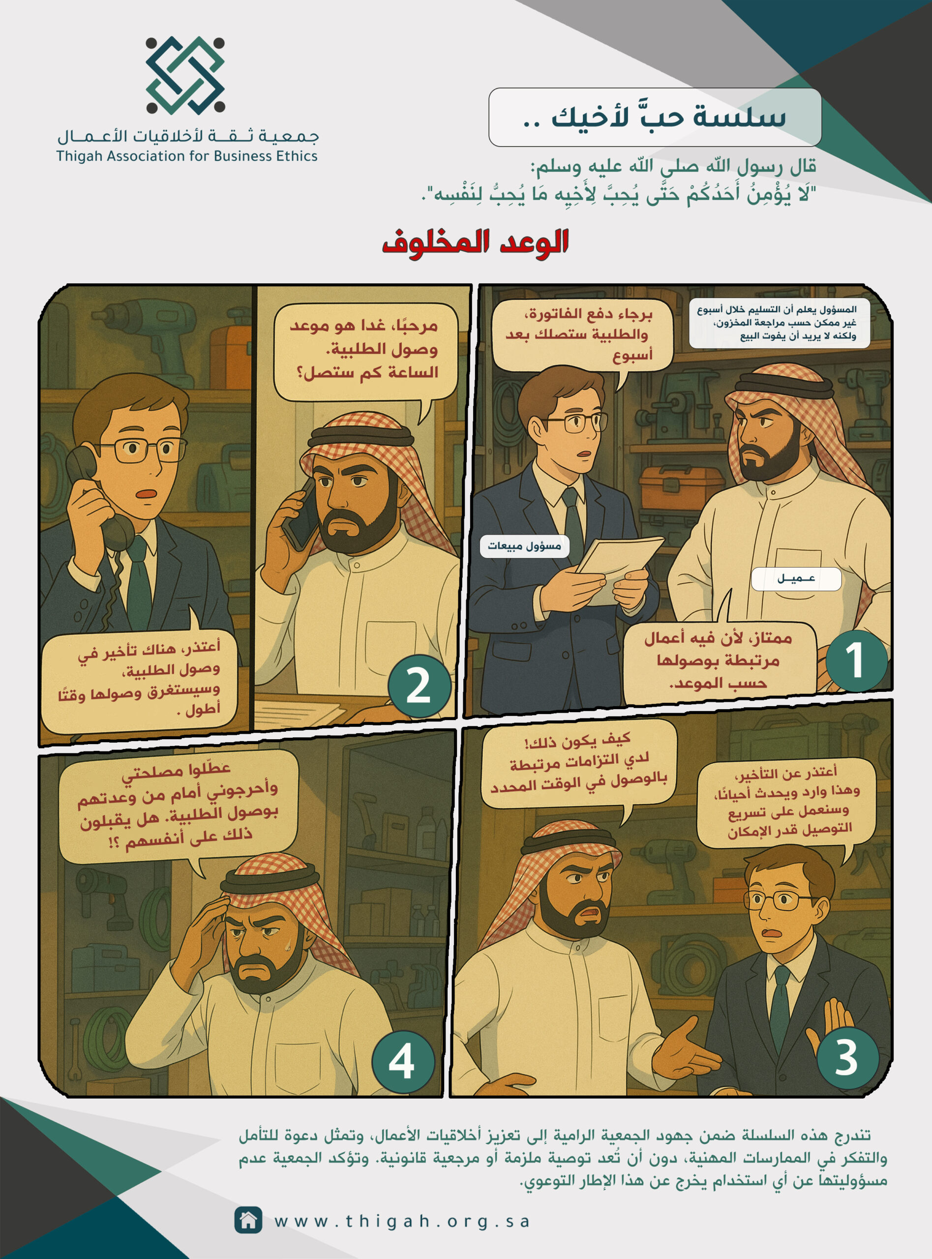 تحت رعاية سعادة رئيس جامعة الملك فيصل د. عادل أبوزناده وبحضور نائب رئيس مجلس إدارة الجمعية د. عبدالإله القصيبي نفذت الجمعية بشراكة مع جامعة الملك فيصل فعالية “يوم التوعية بأخلاقيات الأعمال 1” في بهو عمادة شؤون الطلاب يومي الثلاثاء (للطلاب) والأربعاء (للطالبات) 20-21 جمادى الأول 1447هـ الموافق 11-12 نوفمبر 2025م. …